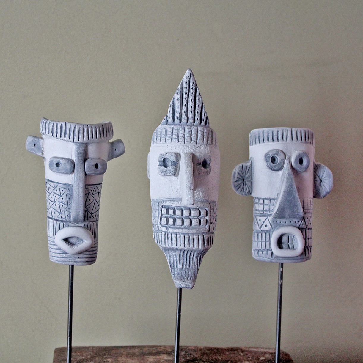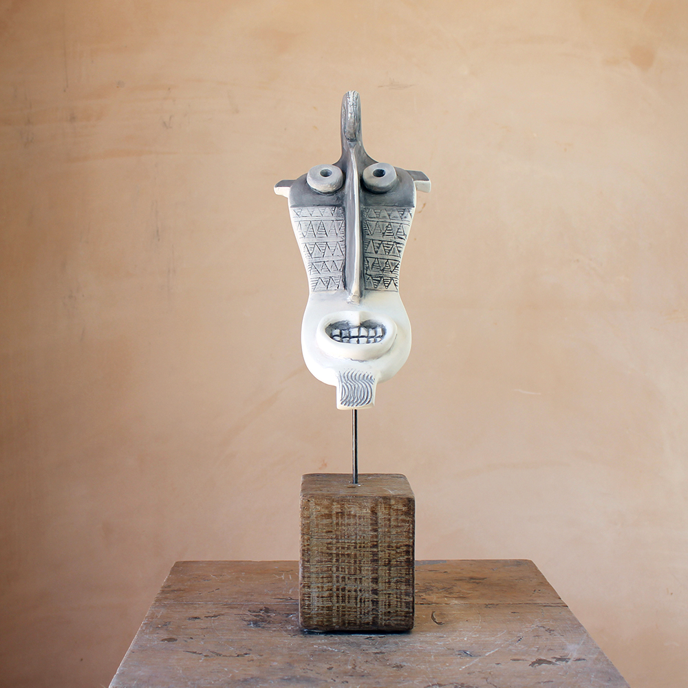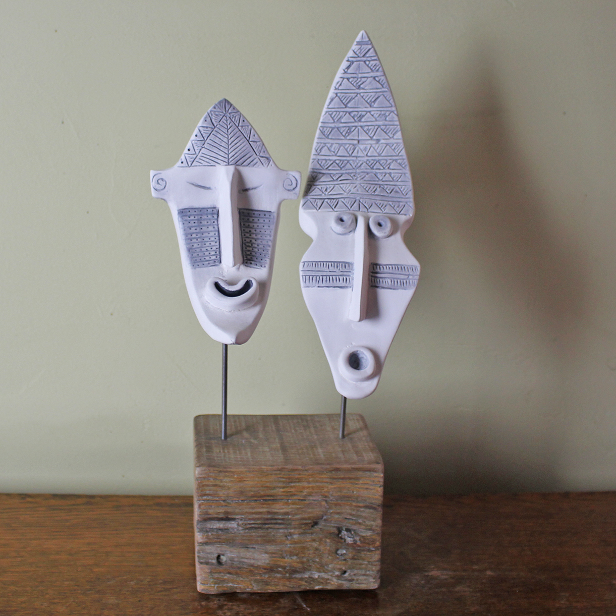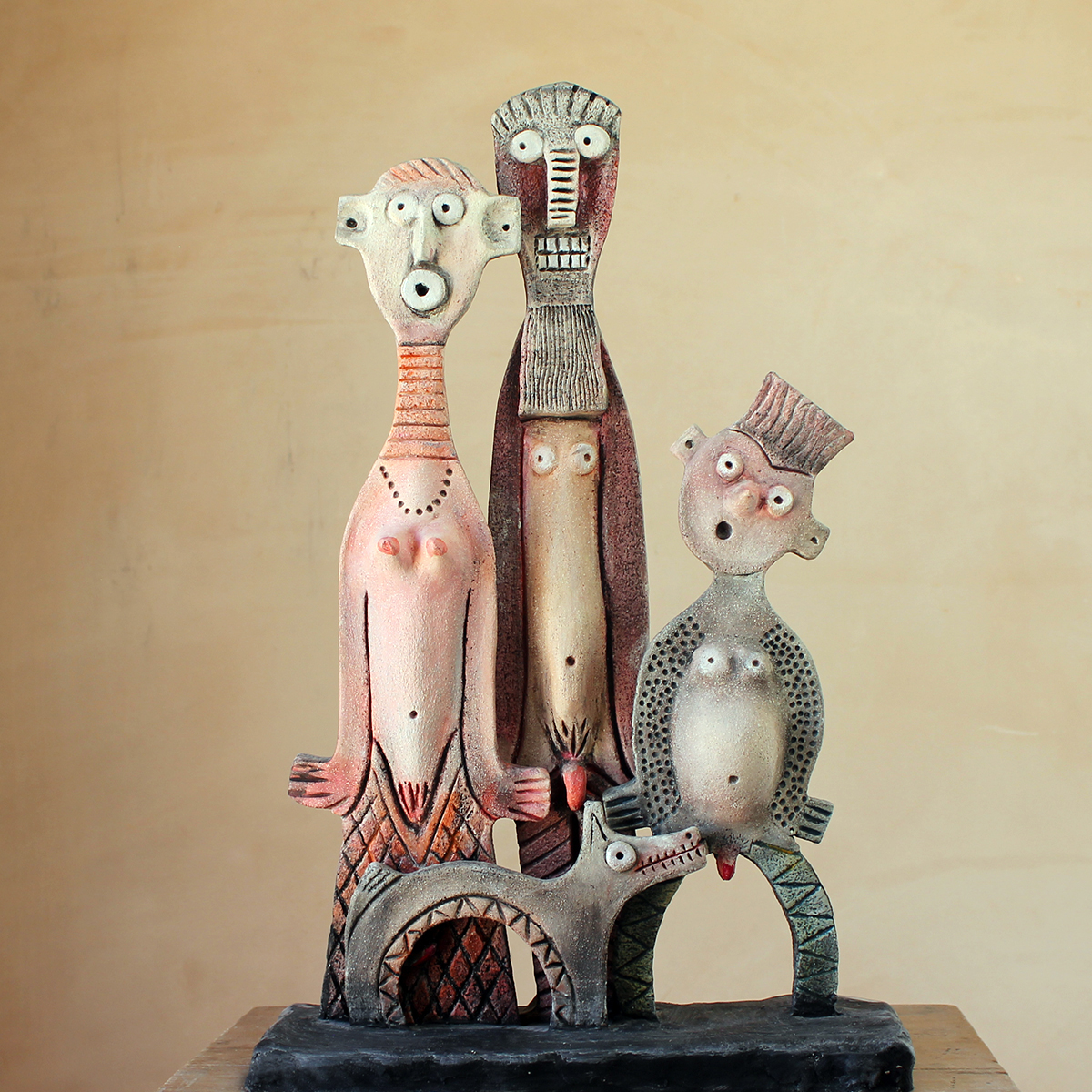 A selection of hand sculpted figures in stoneware, oxide stains and glazes feature Michael’s quirky take on the human condition.