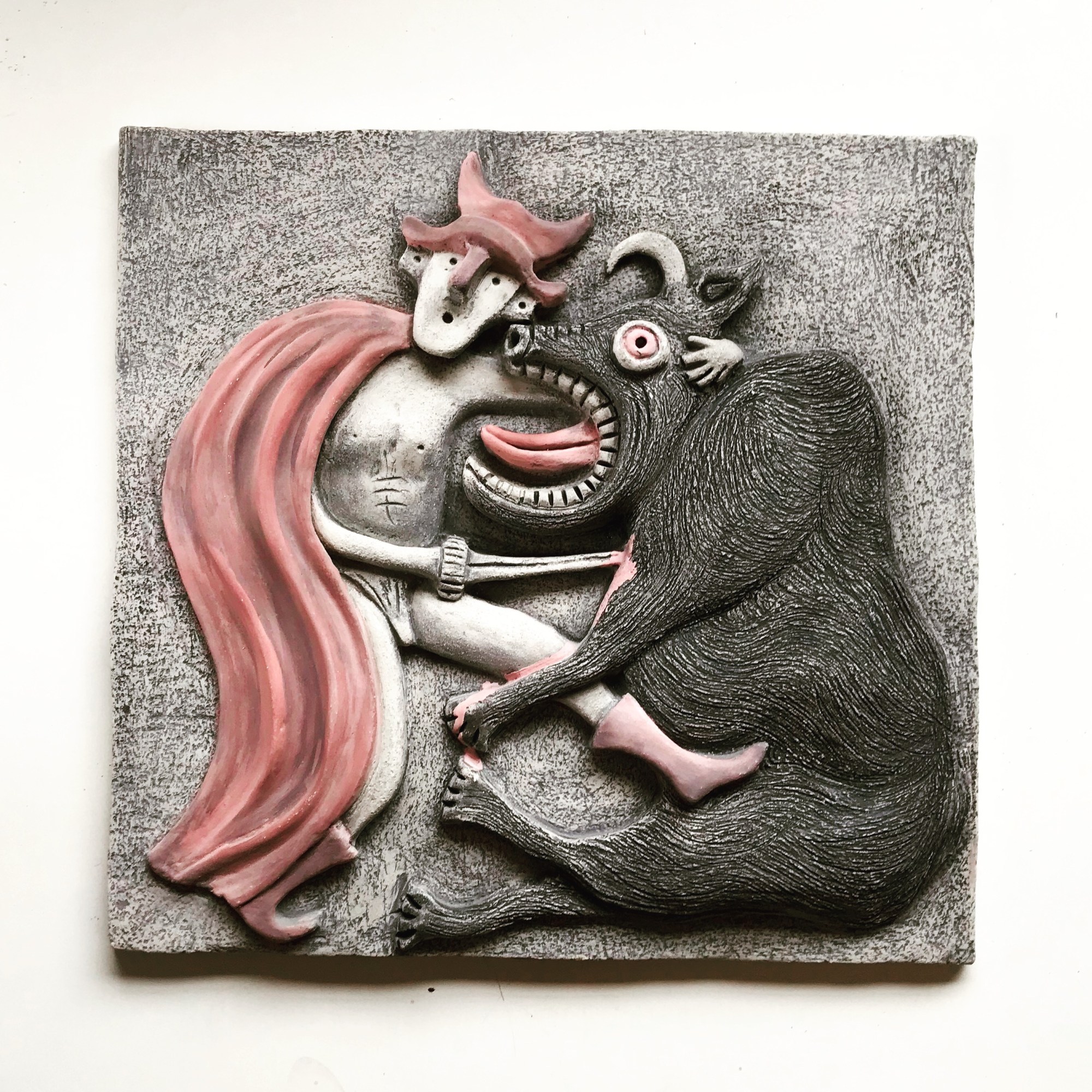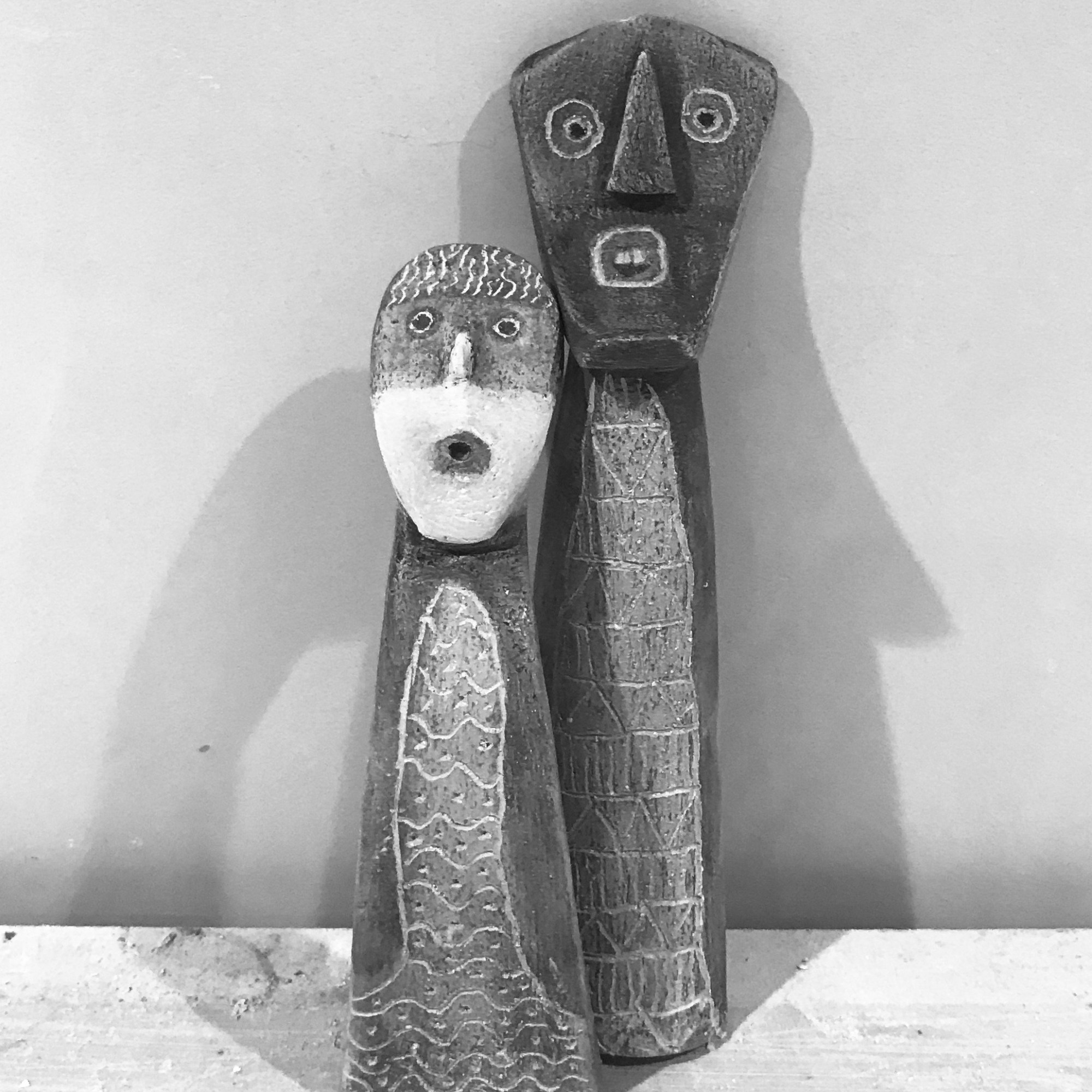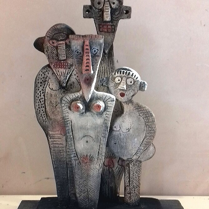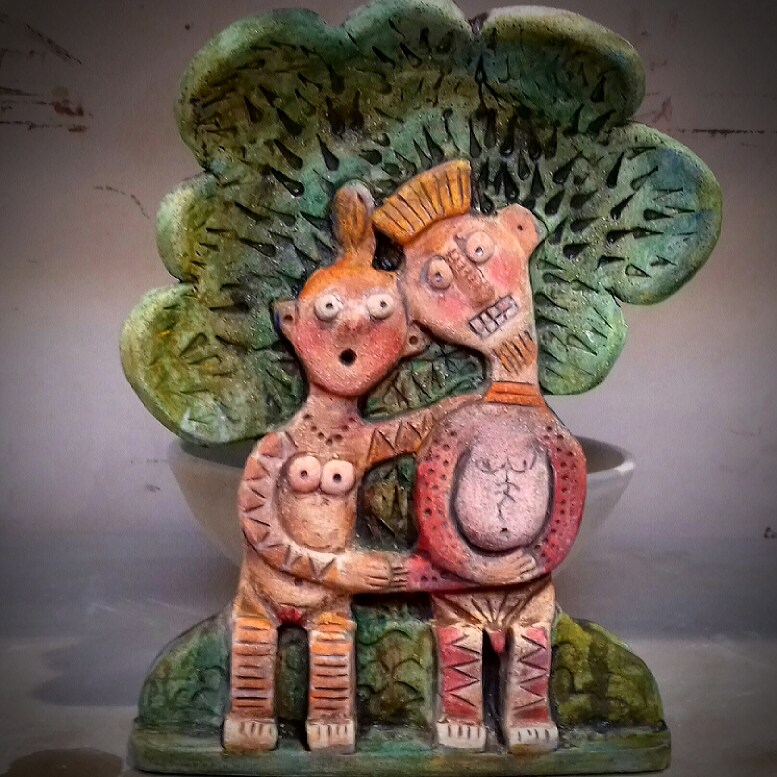 A selection of hand sculpted figures in stoneware, oxide stains and glazes feature Michael’s quirky take on the human condition.