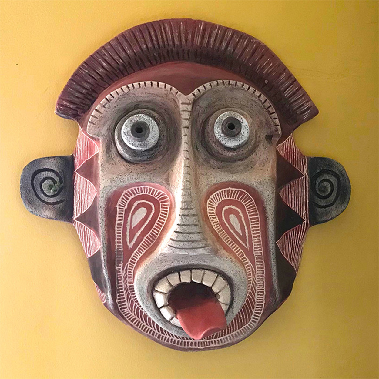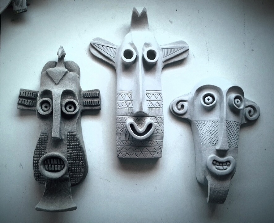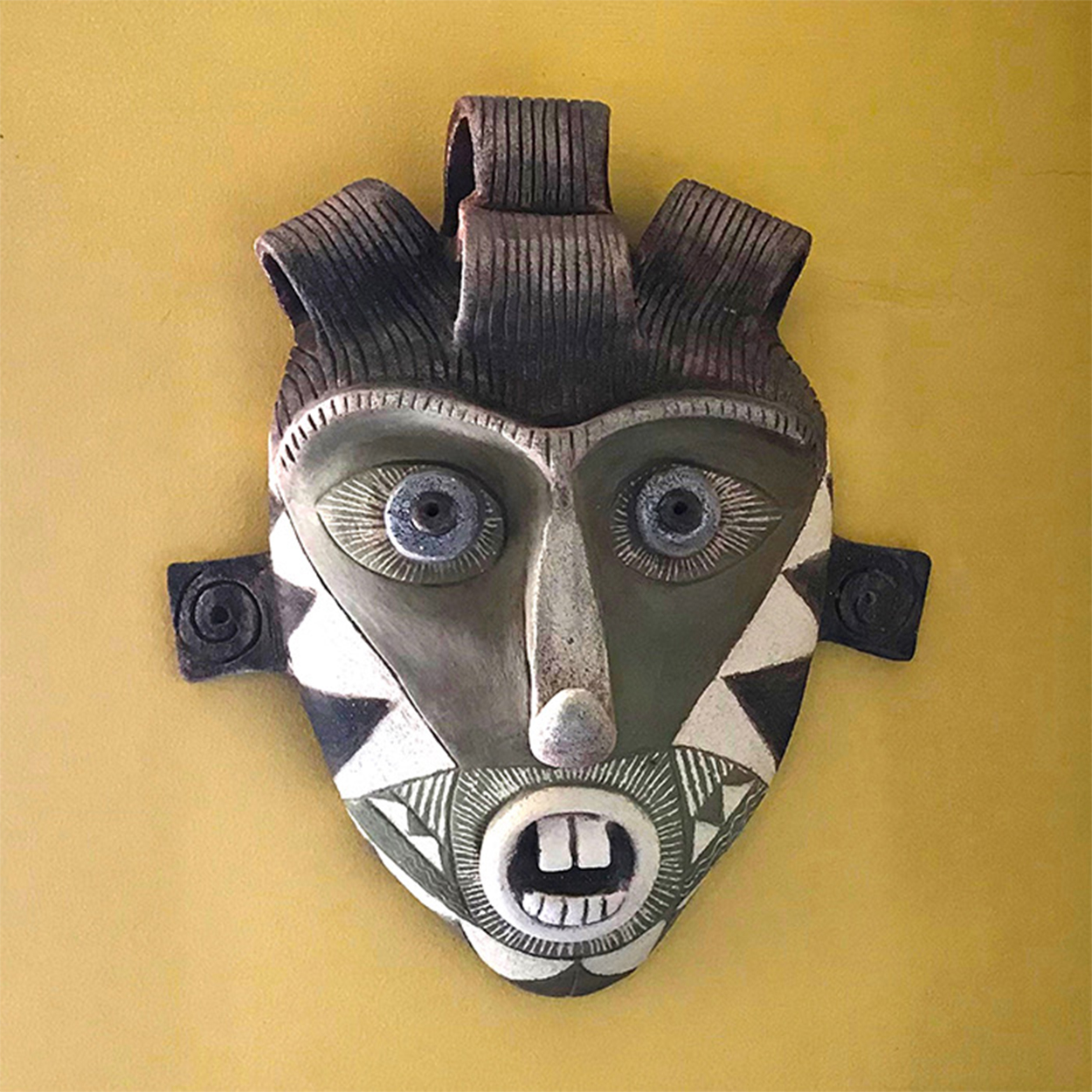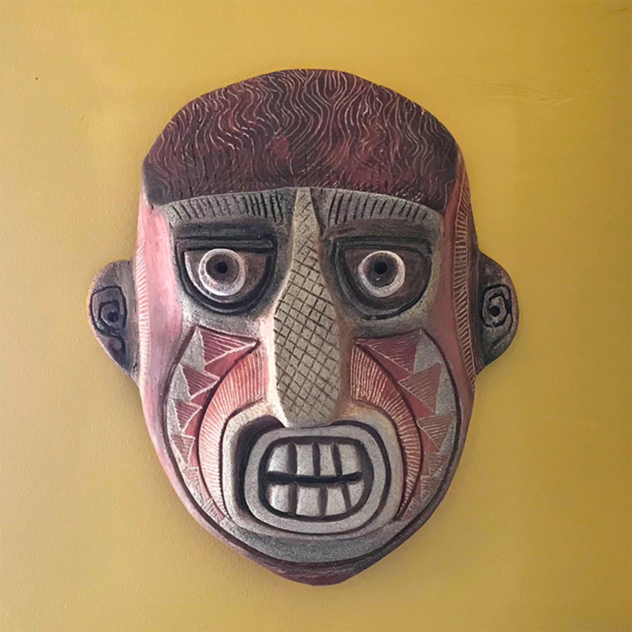 Michael creates masks which reference the artworks and myths of ancient civilisations.